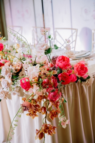 1. Индивидуальное оформление стола молодых любой формы и дизайна цветами и тканями