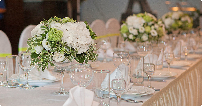 В декорировании свадеб мы используем самые разные материалы. Они могут быть ограничены только вашей фантазией и бюджетом.