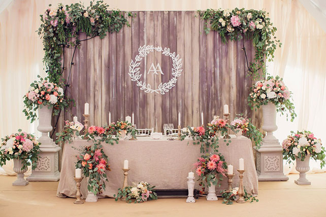 3. Декорирование заднего фона за столом жениха и невесты