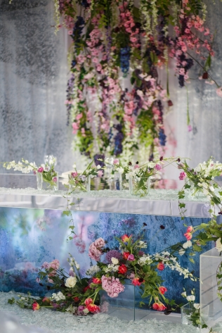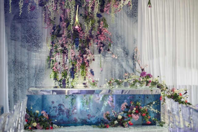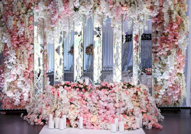 3. Создание декоративного фона за столом молодожёнов с украшением цветами